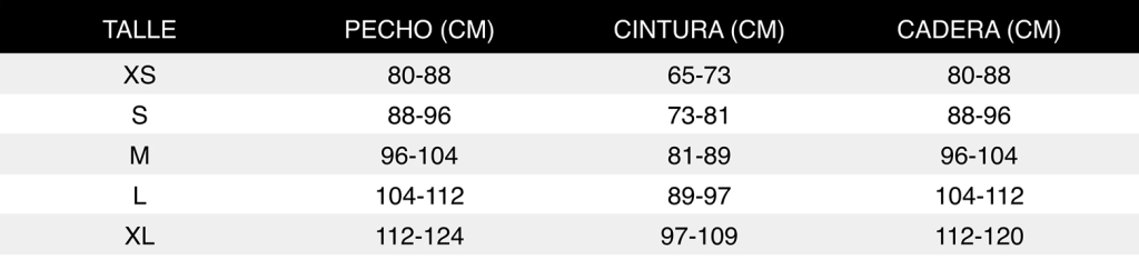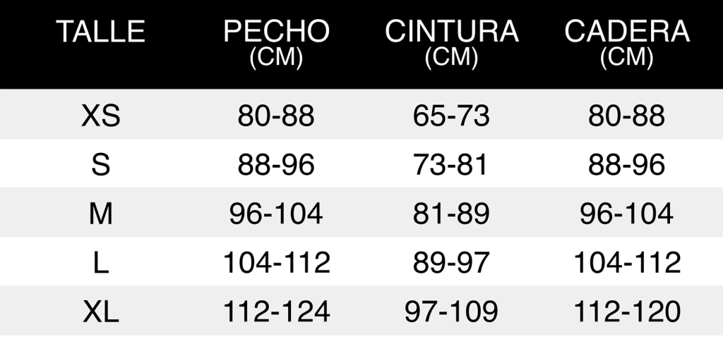 Si las medidas de tu pecho y cintura corresponden a talles diferentes, elige el talle que corresponda a la medida del pecho.